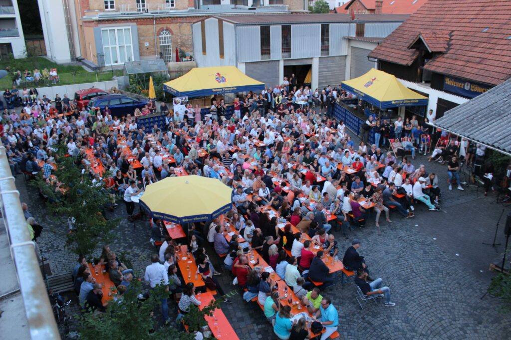 Freuen Sie sich auf gesellige Stunden, frisches Bier und gute Stimmung auf dem Brauereihof.